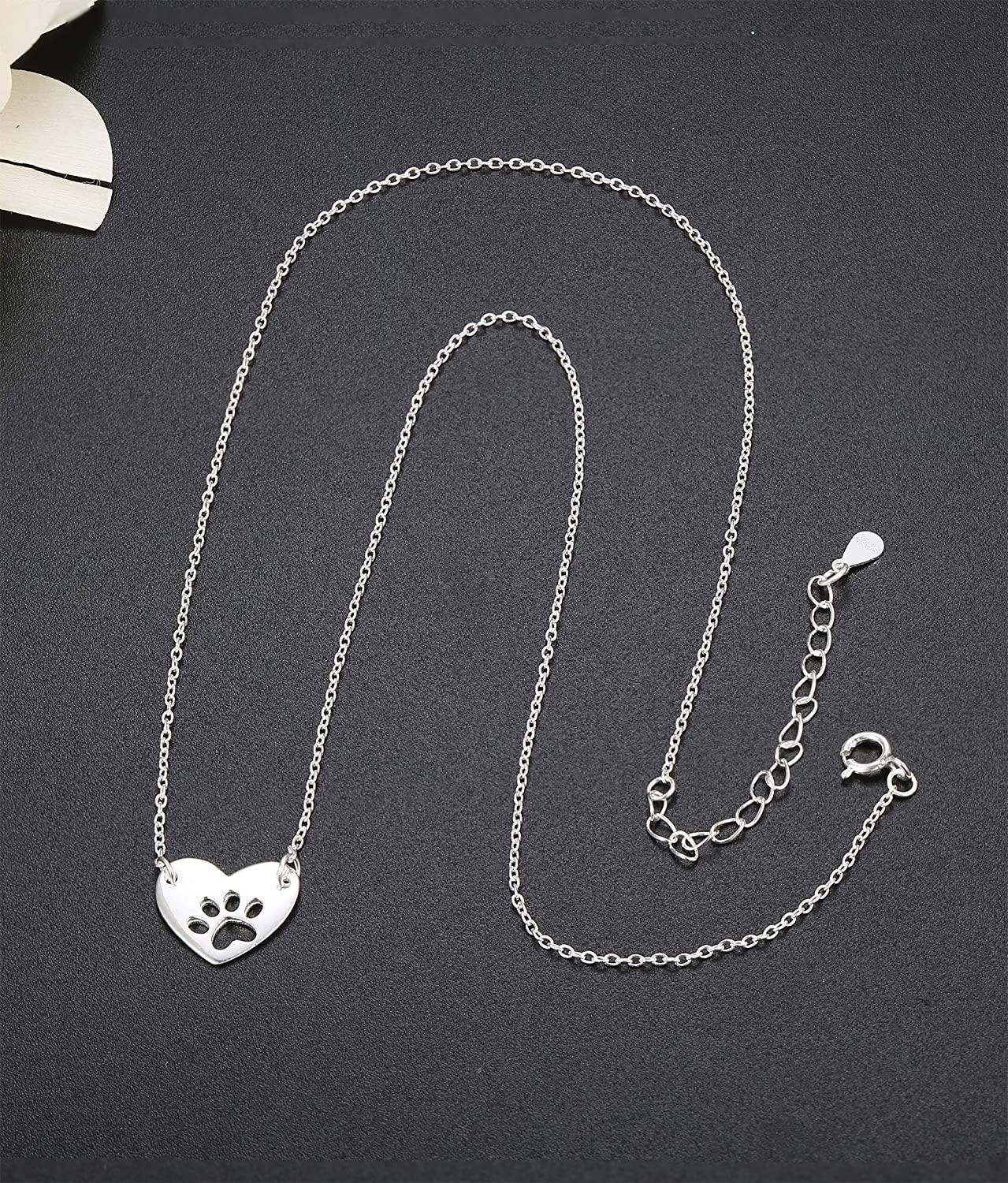 925 Sterling Silver Heart Necklace for Girls Womens Dog Paw Pendant Necklace Love Chain 16''+2''